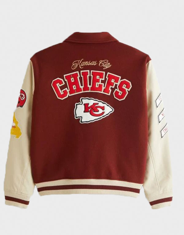The Abercrombie Kansas City Chiefs varsity jacket features a classic design with a sporty design. Made from high-quality wool, it boasts a vibrant little brown with white sleeves which are crafted with leather. This jacket is a must-buy if you are a fan of the Kansas City Chiefs.