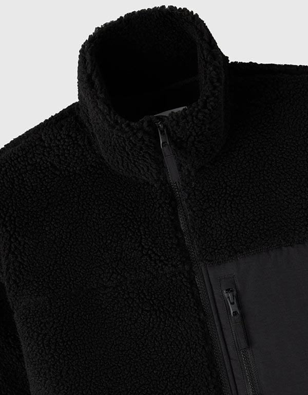 deep pile sherpa full zip jacket black