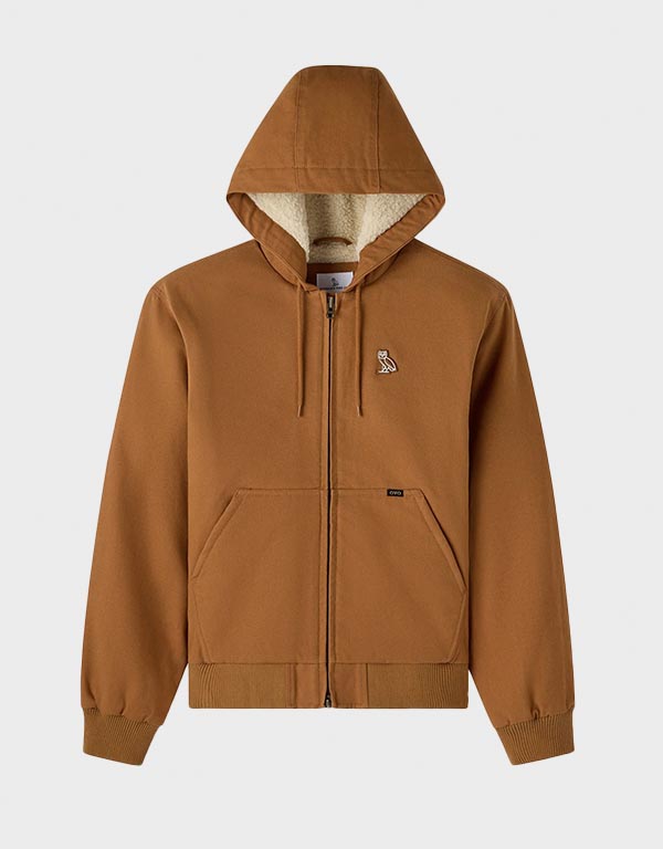 brown sherpa lined hooded work jacket