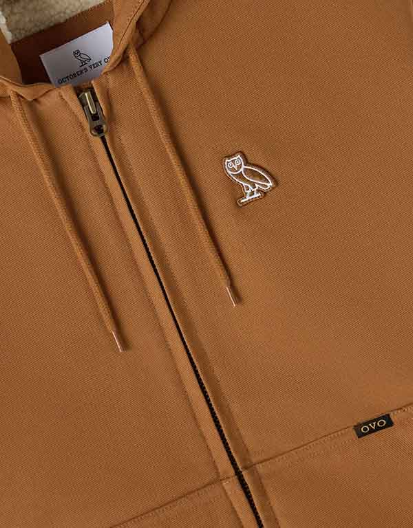 sherpa lined hooded work brown jacket