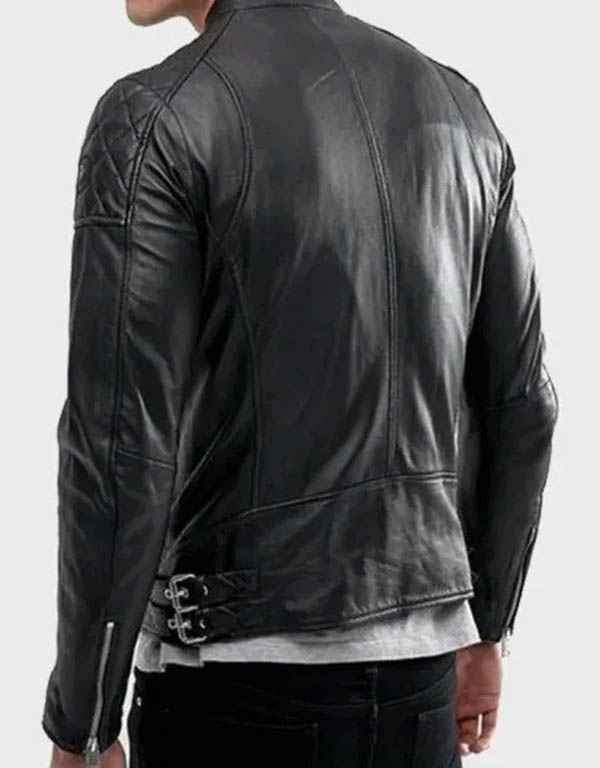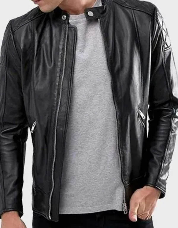 Stylish Black Cafe Racer Biker Leather Jacket for Mens