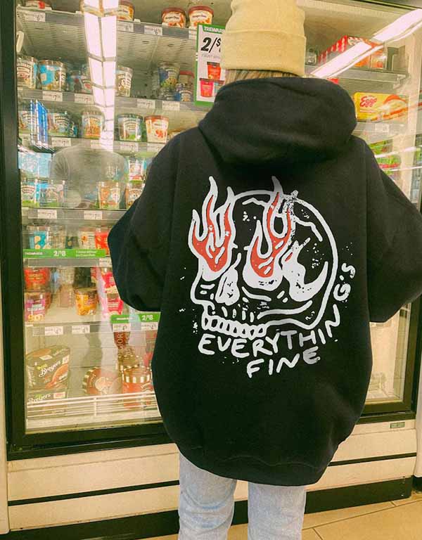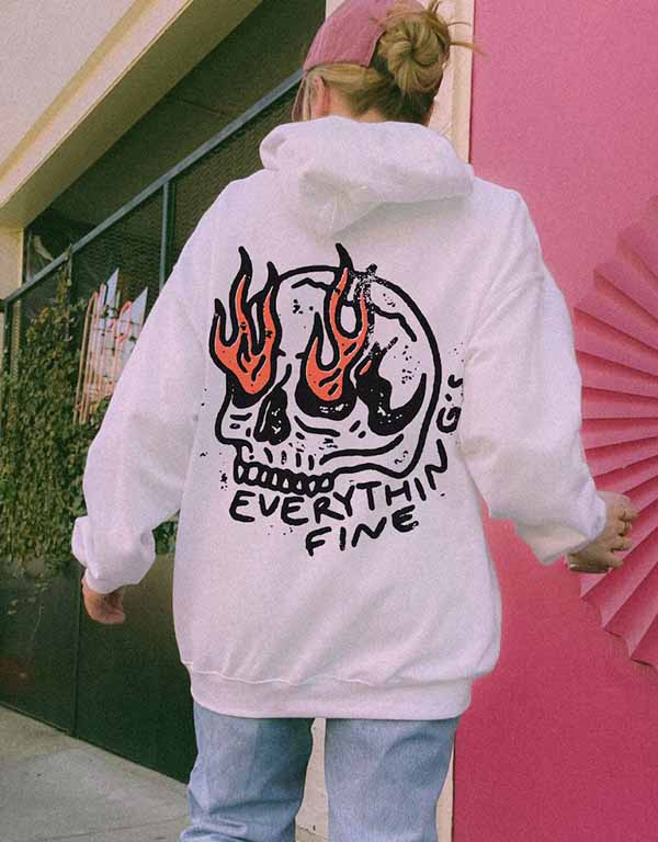 Everything’s Fine With Boho Hippie Skull on Fire Unisex Oversized Hoodie