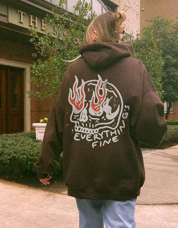 everything's fine unisex brown hoodie