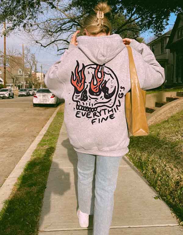 everything's fine unisex gray hoodie