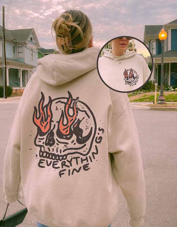 Be the first to review “Everything’s Fine With Boho Hippie Skull on Fire Unisex Hoodie” Cancel reply