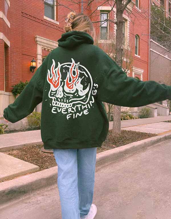 everything's fine with boho hippie skull on fire unisex hoodie