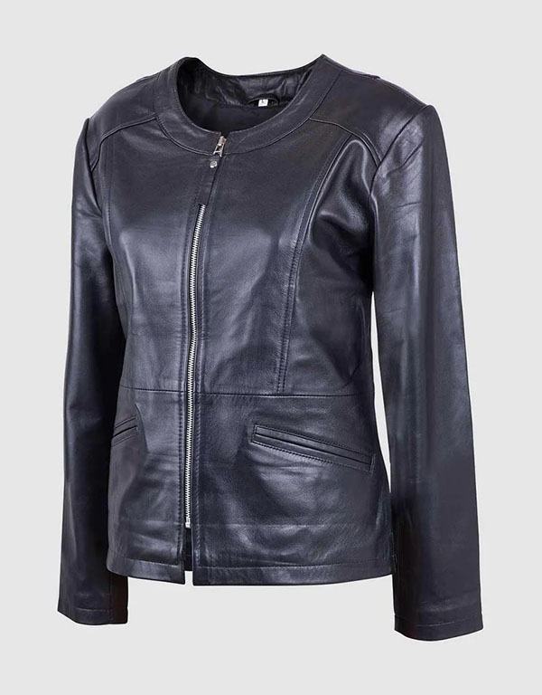 classic round neck black motorcycle jacket