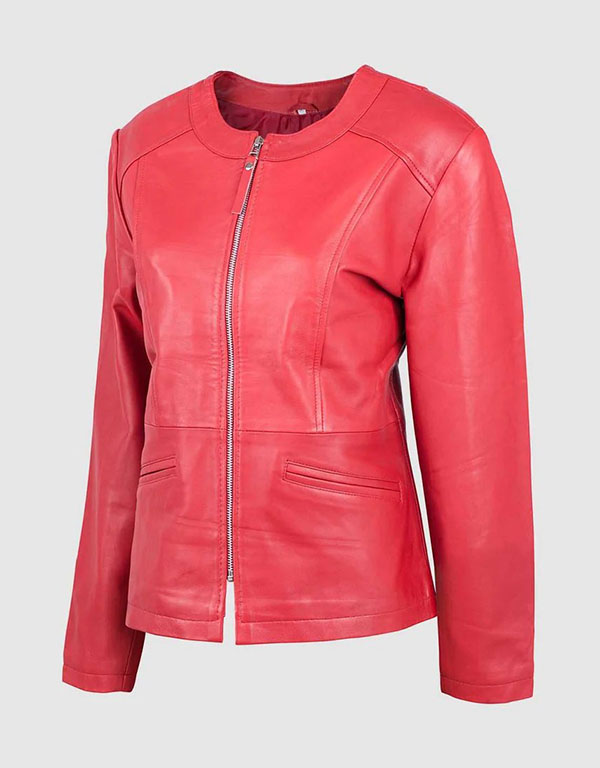 female red motorcycle jacket