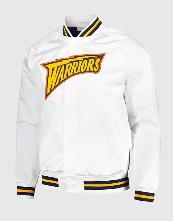 golden state warriors hardwood classics white raglan full snap satin jacket