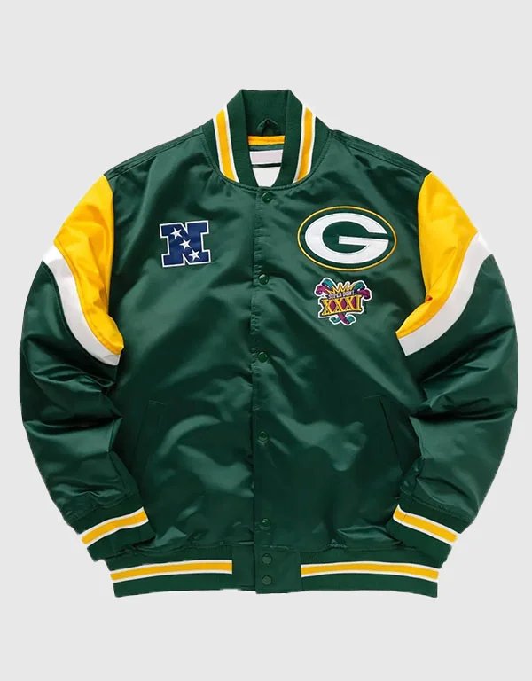 HomeMens Varsity Jackets Green Bay Packers Heavyweight Green Satin Jacket