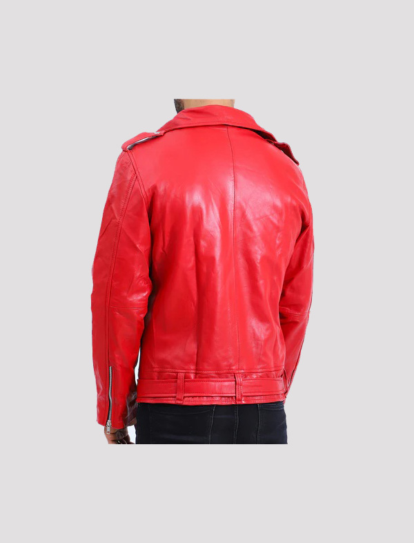 Mens Biker Neagn Red Leather Jacket
