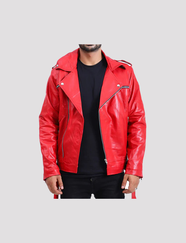 Mens Biker Negan Red Leather Jacket