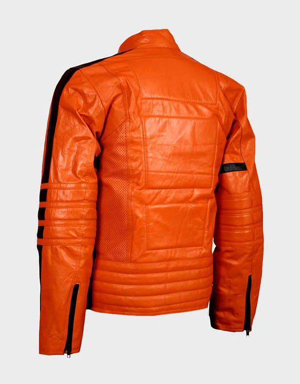 The men’s orange leather biker jacket is one of the best jackets available in the market. It is made from genuine leather with excellent artistry and is in the correct taste.
