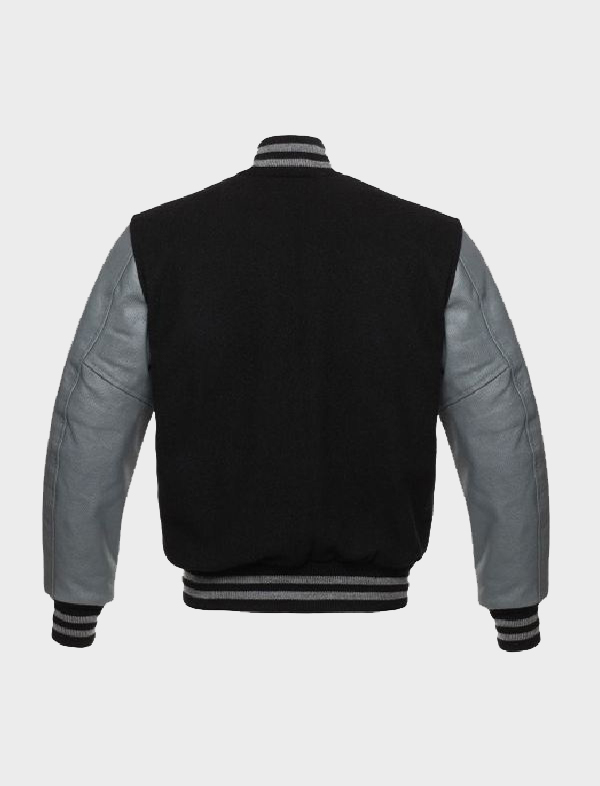 Men’s Varsity Jacket With Leather Sleeves – Black