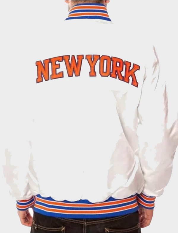 HomeMens Varsity Jackets New York Knicks Satin Jacket in White