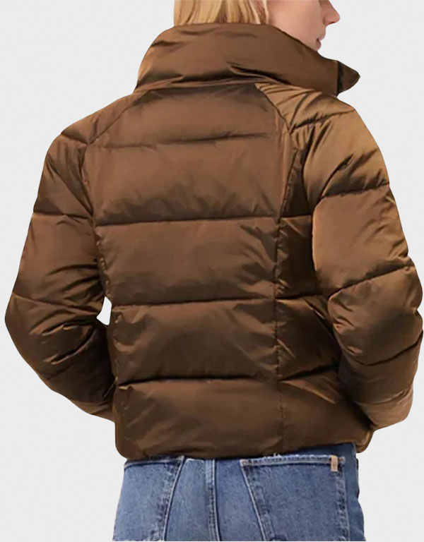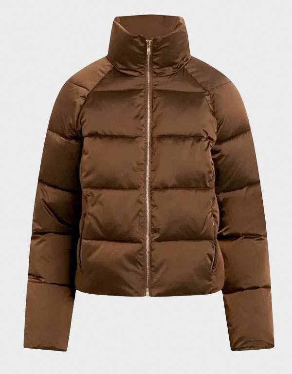 Kimber Min Only Murders in the Building Ashley Park Brown Puffer Jacket