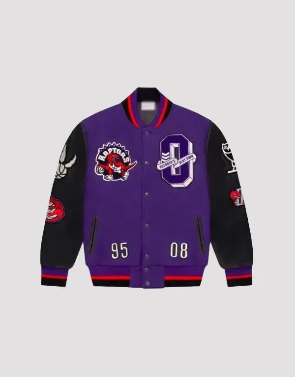 ovo mitchell and ness 95 raptors varsity jacket purple