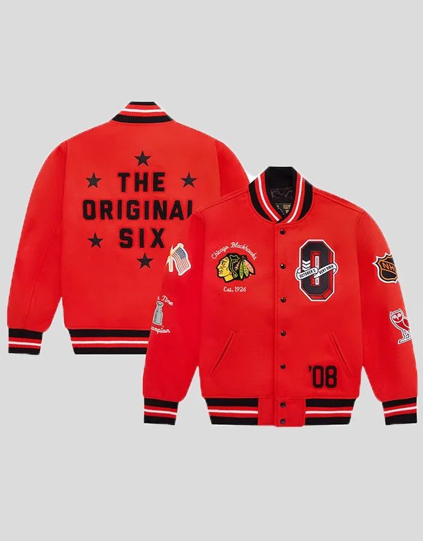 OVO x NHL Chicago Blackhawks Red Varsity Jacket