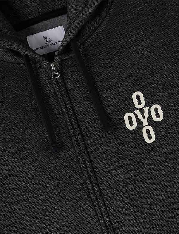 pom pom speckle fleece up zip hoodie
