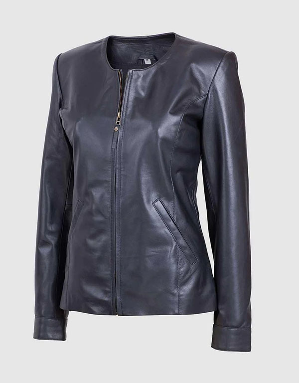 collarless leather jacket for women