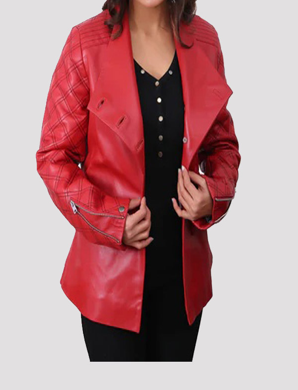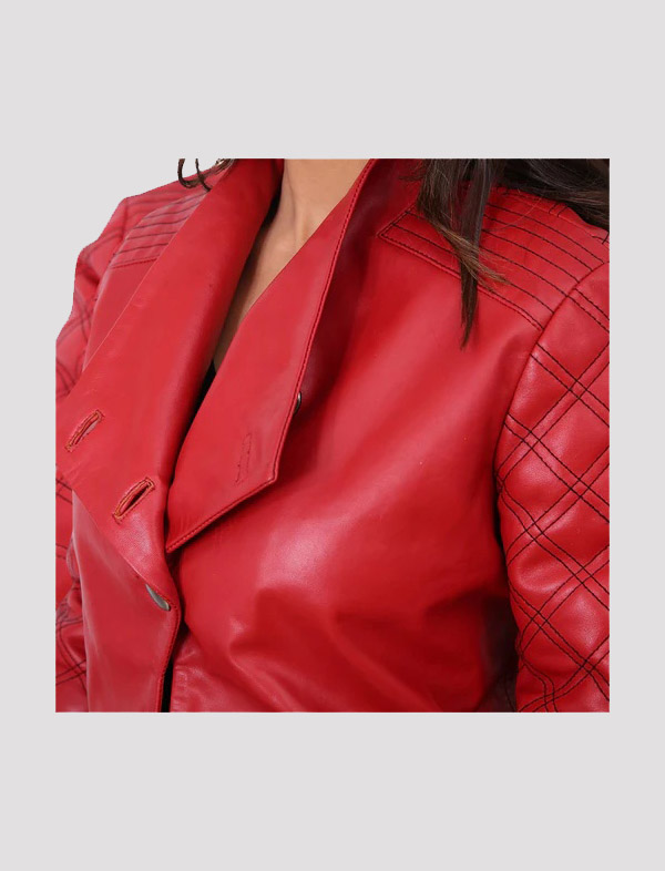 Womens Valentines Red Quilted Leather Jacket